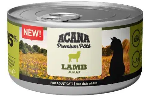 Acana yaş mama, kedilerin günlük beslenmesi için, % 100 doğal içerikle hazırlanmış, yüksek ve kaliteli et oranına sahip yetişkin kedi mamasıdır. Acana yaş kedi maması tahılsızdır. Koruyucu ve renklendiriciler kullanılmadan hazırlanmış, kaliteli içeriğe sahip olan Acana yaş mama, kediler için kuzu etinin en kalıtelı kısımlarrı seçilerek hazırlanır. Acana kuru mama ve yaş mamada bilinen kaliteli bir markadır. Organik içeriğinin yanı sıra kedi mamalarının üretiminde dogal ve taze et kullanılmaktadır. Acana her zaman üst kalite kedi mamaları üretmektedir.