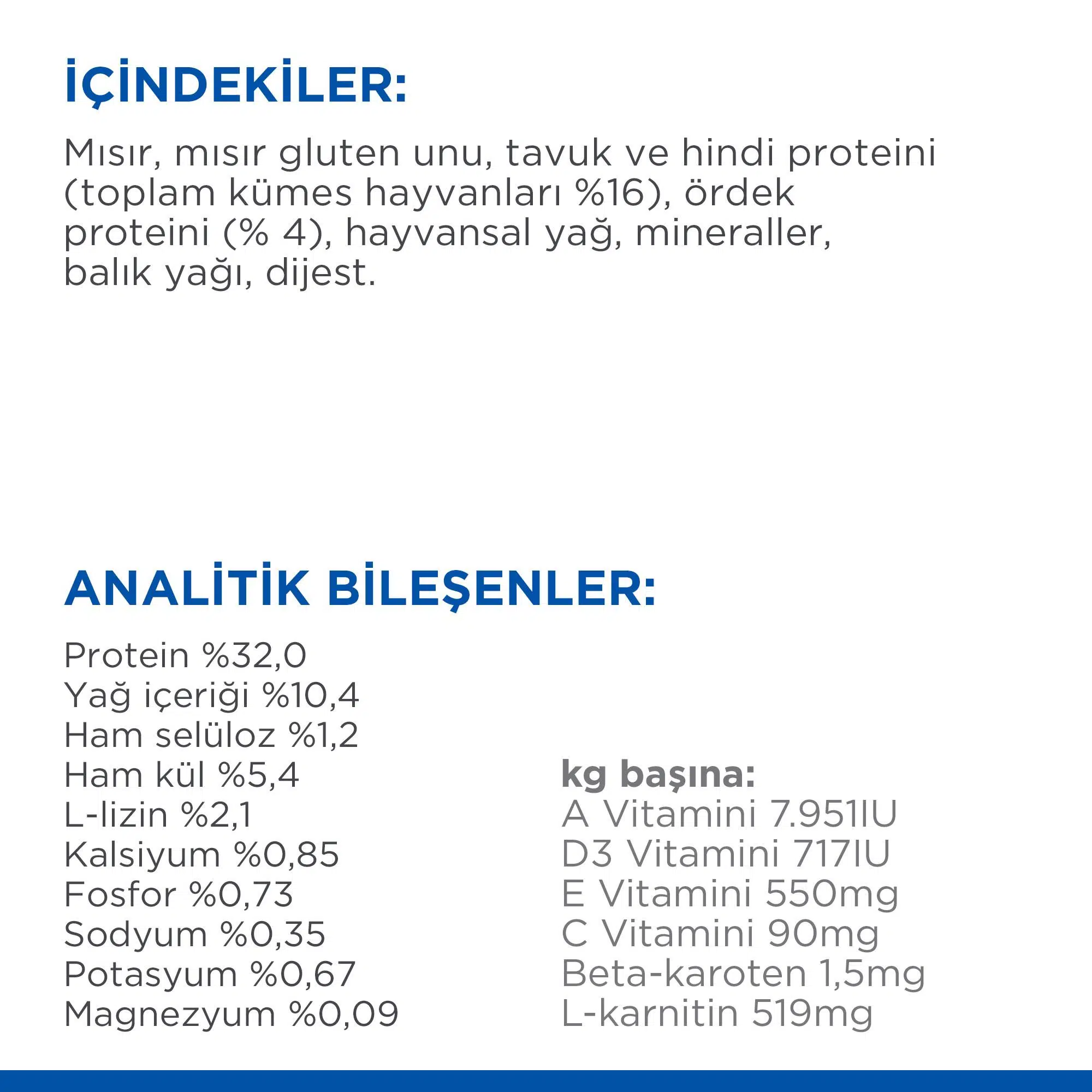 İçeriğindeki taurin maddesi sayesinde Hills Science Plan Kedi Maması kedinizin kalp ve göz sağlığını gelişmesine yardımcı olur. Bu sayede kediniz daha keskin görüşlü ve daha sağlıklı bir şekilde yaşamına devam eder.