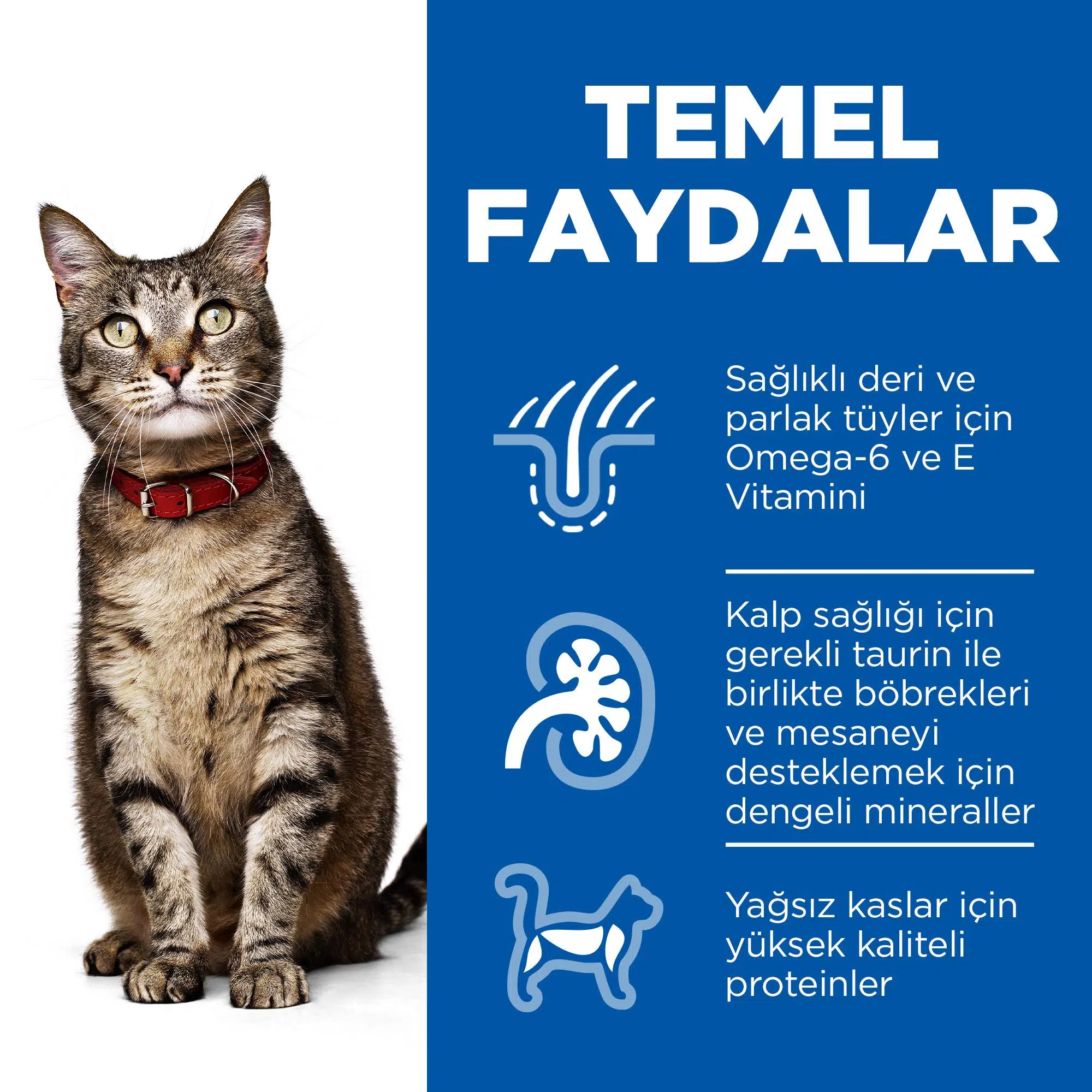 12 aylıktan 6 yaşına kadar ki dönemde yetişkin kediler için özel formüle edilmiş bir kedi mamasıdır. Hills Yetişkin Kedi Maması ile kedilerinizin formda ve sağlıklı şekilde büyümesini sağlayabilirsiniz. En İyi Kedi Maması kedinizin kilo kontrolünü de sağlamasına yardımcı olur.
