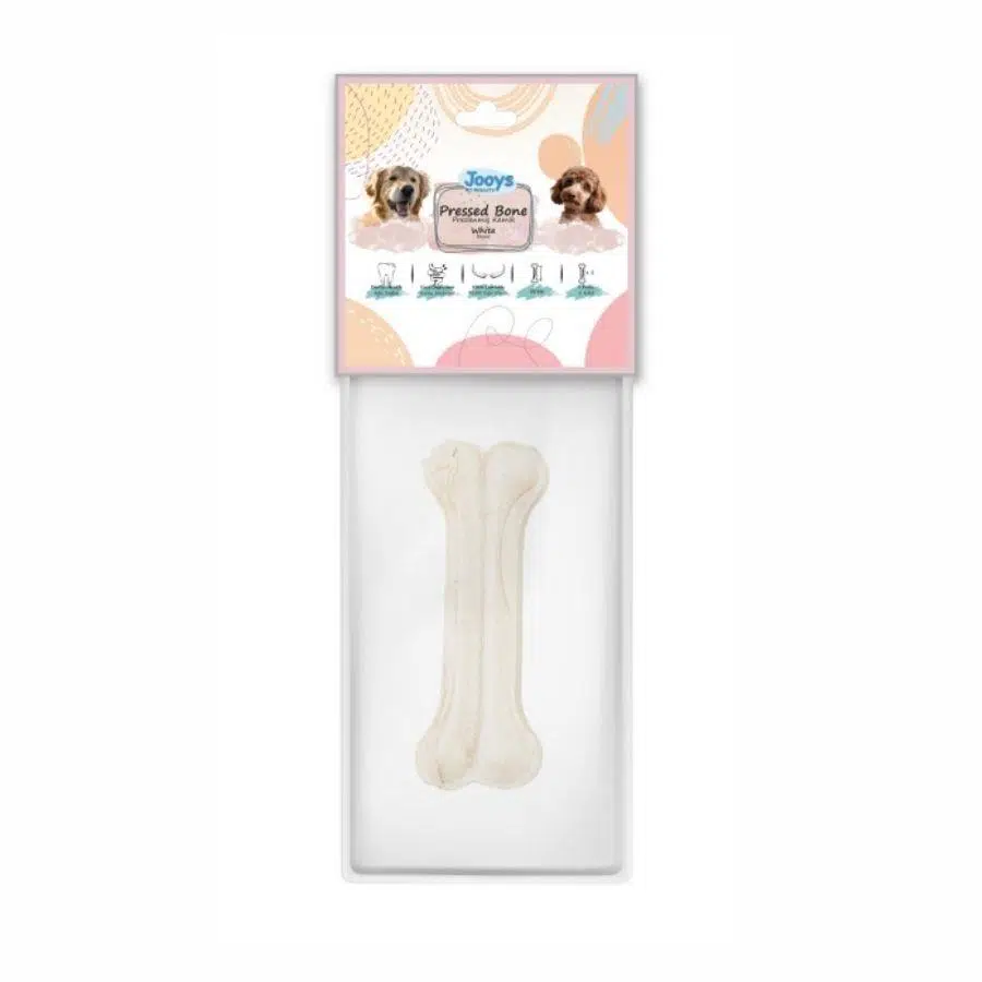 Jooys Beyaz Pres Kemik, %100 sığır derisinden üretilmiş olup katkı maddesi içermeyen doğal formülü sayesinde köpeğinizin çiğneme ihtiyacını karşılamaya yardımcı olur. Ağız sağlığını desteklerken kolay sindirilebilir yapısıyla güvenli bir çiğneme keyfi sunar.