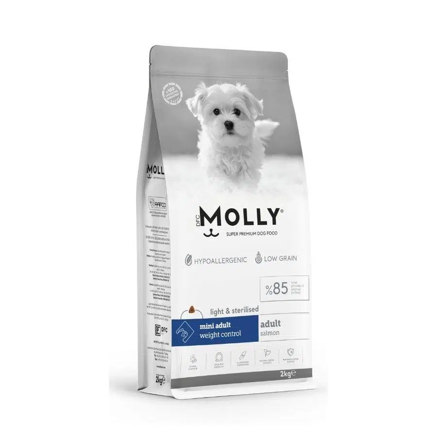 Molly ‘'Weight Control‘' köpek maması mini ırk kilolu ve/ veya yetişkin köpekler için profesyonel beslenme uzmanları tarafından özenle formüle edilmiş ve yüksek kaliteli içeriğinden dostlarımızın tam olarak faydalanması hedeflenerek ileri ekstruder teknolojisi ile üretilmiştir.