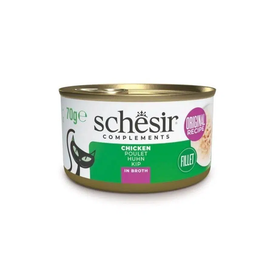 Schesir Tavuk Filetolu Kedi Konservesi, gerçek buharda pişirilmişpremium tavuk filetosuile hazırlanmış, lezzetli et suyunda sunulan özel bir tamamlayıcı yaş mamadır. Az ve doğal içeriklerden oluşan bu tarif, yüksek protein ve düşük karbonhidrat oranıyla kedinizin doğal beslenme ihtiyaçlarına uygundur.
