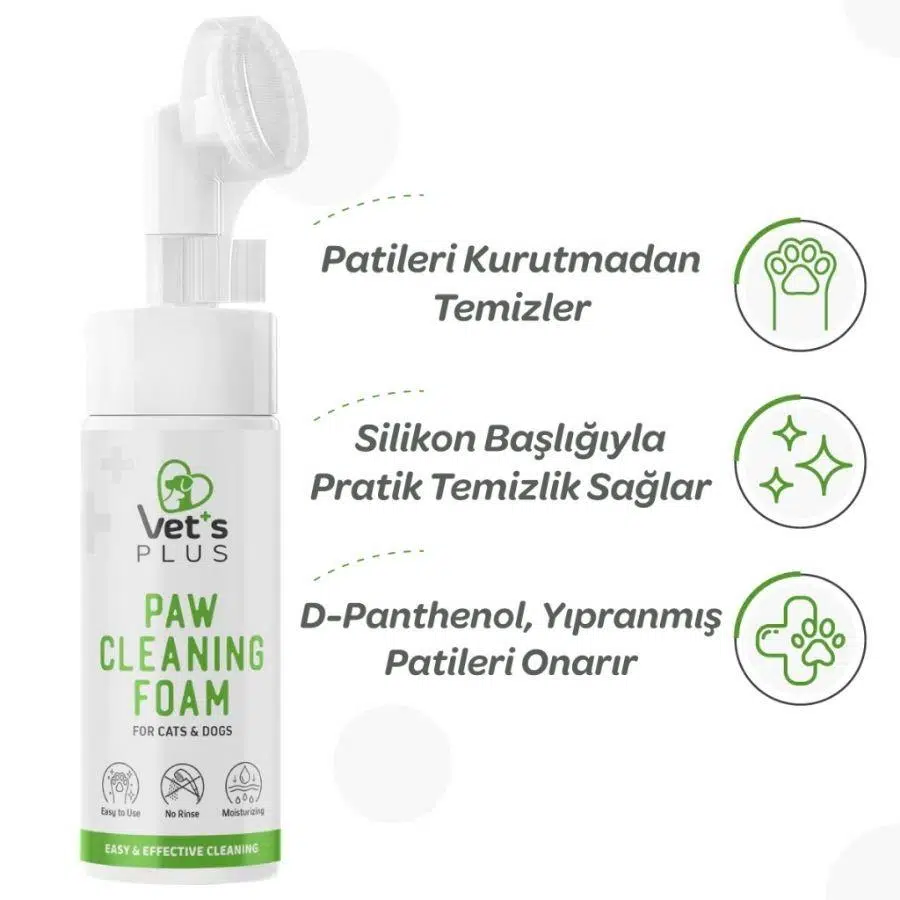 | Etiketler | Vet's Plus Kedi ve Köpekler İçin Aloe Vera Özlü Pati Temizleme Köpüğü 150 ml |